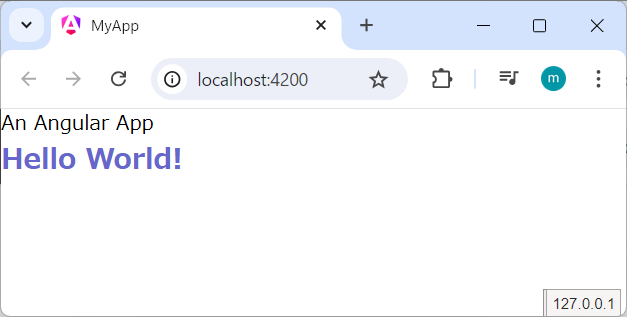 プロパティの値「An Angular App」が表示されました。