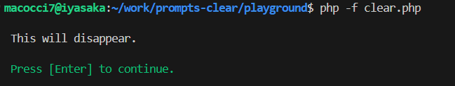 mkdir prompts-clear cd prompts-clear composer require laravel/prompts※あるいは、Laravel新規プロジェクト作成でもOKです。