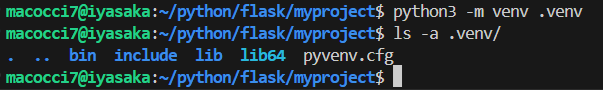 カレントディレクトリに「.venv」フォルダが作成されます。