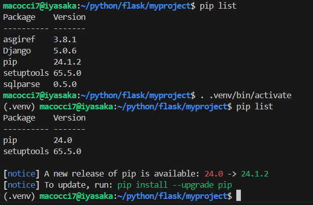プロジェクトの作業を始める前に仮想環境をアクティベートします。