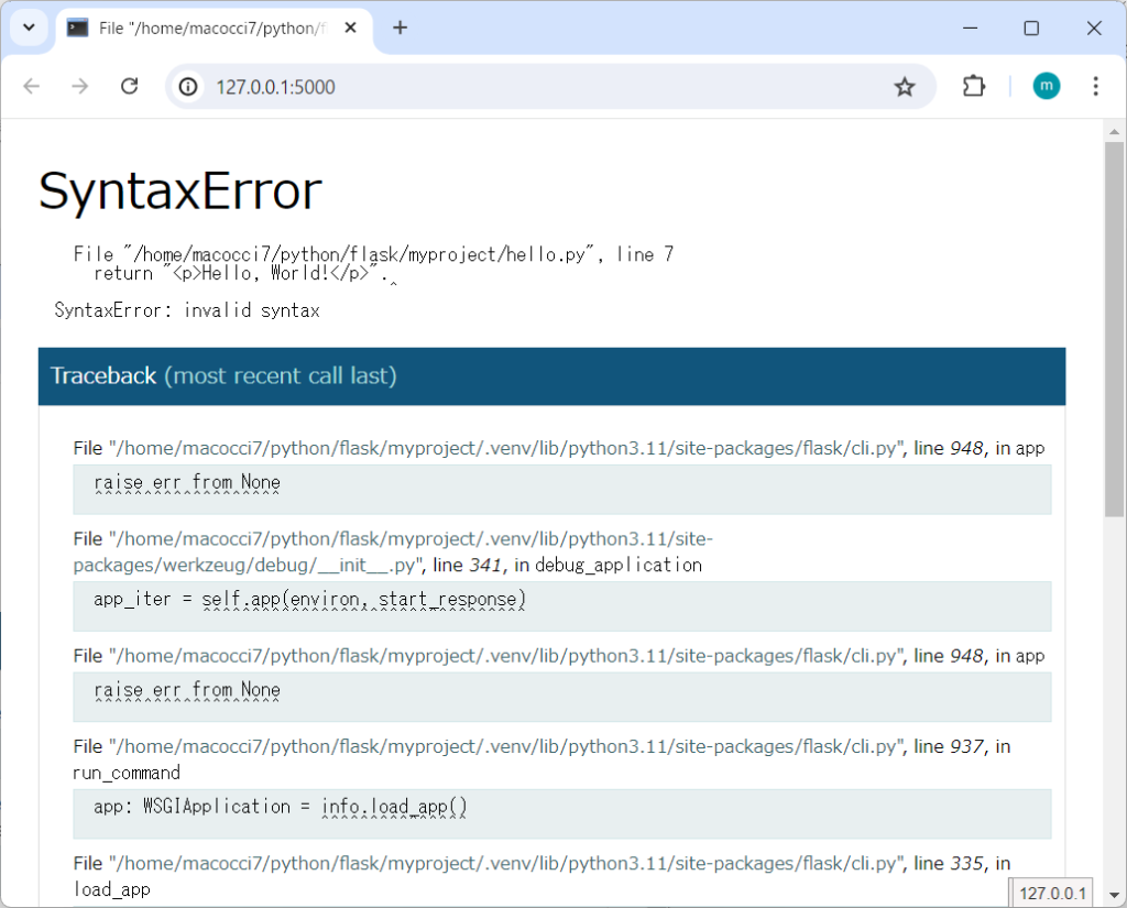▼http://127.0.0.1:5000/ にアクセスした場合