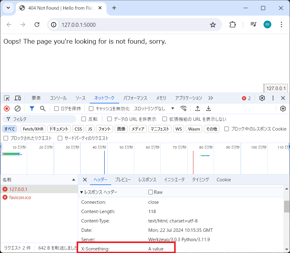 ▼http://127.0.0.1:5000/ にアクセスした際のレスポンスヘッダー