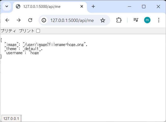 ▼http://127.0.0.1:5000/api/me にアクセスした場合