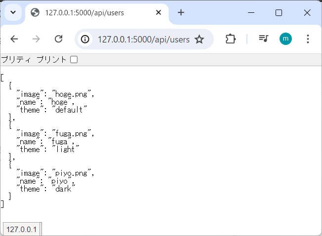 ▼http://127.0.0.1:5000/api/users にアクセスした場合