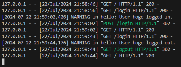 ▼http://127.0.0.1:5000/logout にアクセスした場合