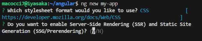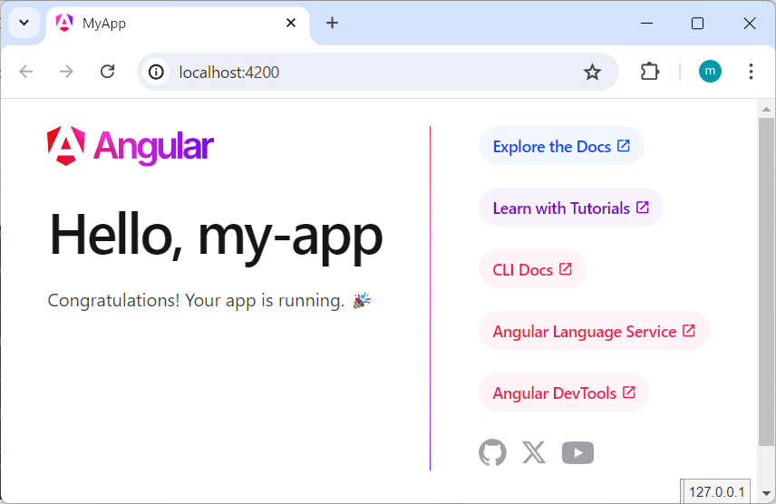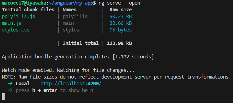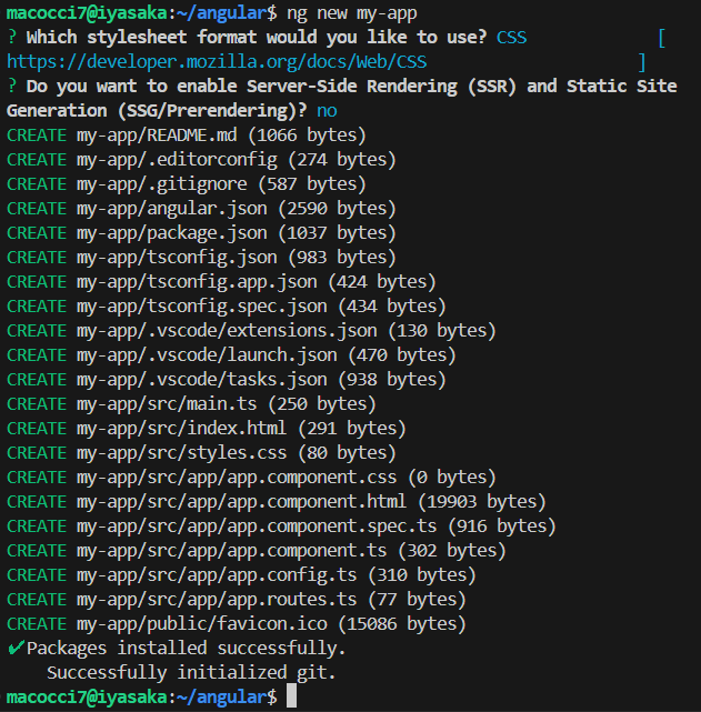 「my-app」フォルダ内に最小構成のAngularアプリケーションが展開されます。