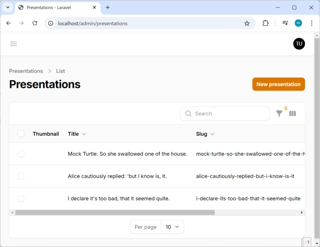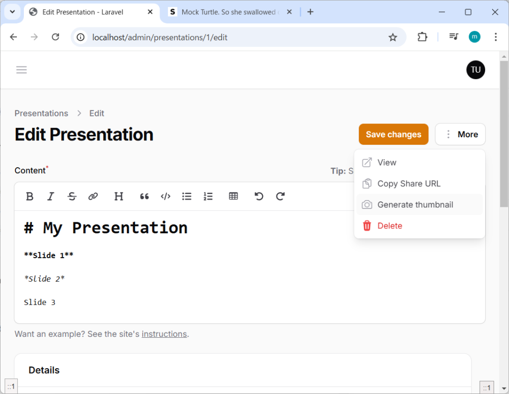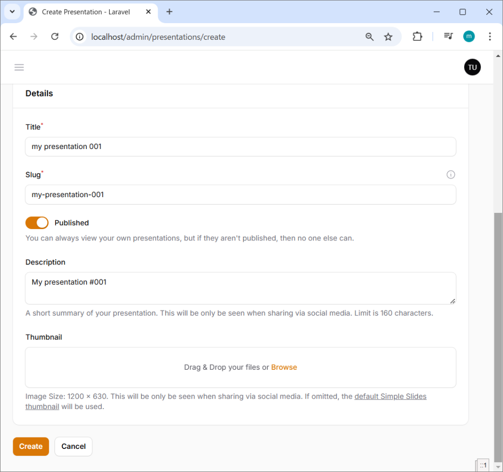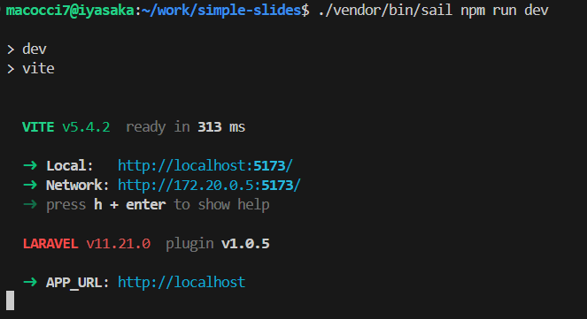 Laravel News で紹介されていましたが、Laravel+Vue+PosgreSQL で構築されているテキストファーストのプレゼンテーションツール Simple Slides をローカル環境で使ってみました。