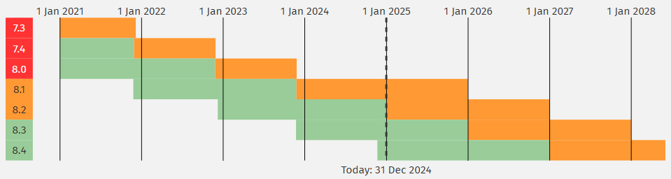 | ブランチ | 初回リリース | アクティブサポート期限 | セキュリティサポート期限 |