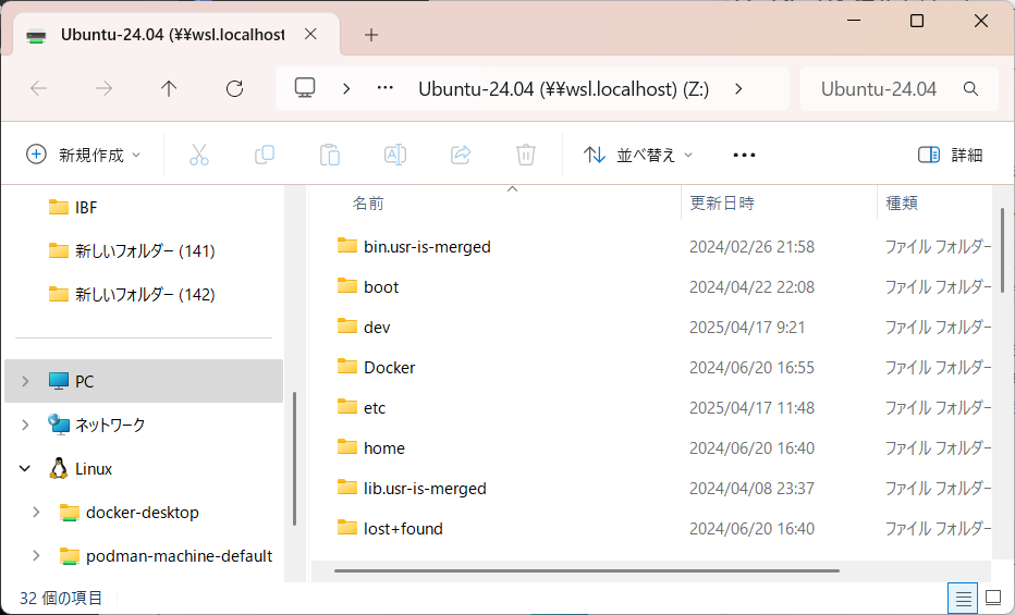 - Ubuntu24.04がWSL2のディストリビューションとして存在