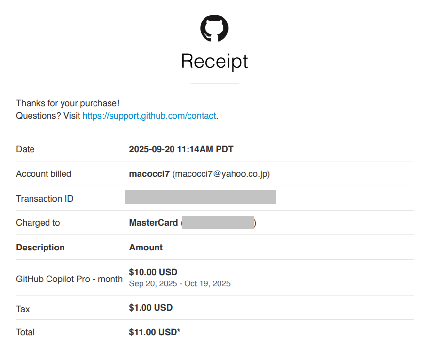 ※2025/09/23追記:請求時には、10%の税が加算され、月額11USDになります。