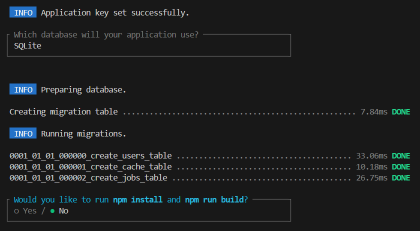 既存の「app/Models/User.php」と「database/migrations/0001_01_01_000000_create_users_table.php」は上書きされませんでした。