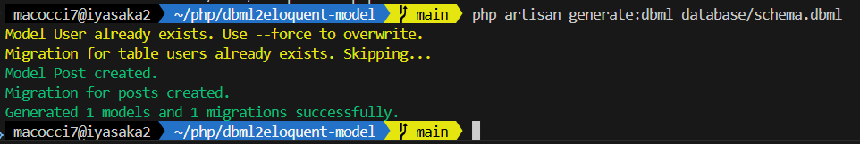 DBMLからmigrationファイルとmodelファイルを同時に生成します。
