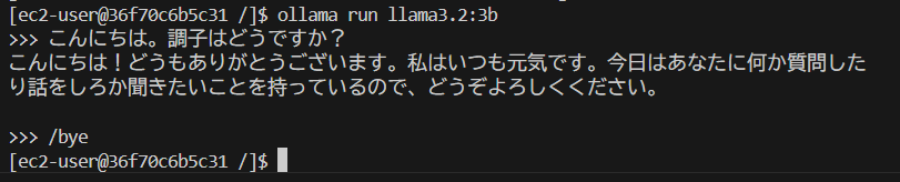 コンテナ側からホストOSのLLMを使ってチャットをすることができました。