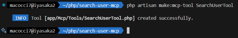▼「app/Mcp/Tools/SearchUserTool.php」が作成されました。