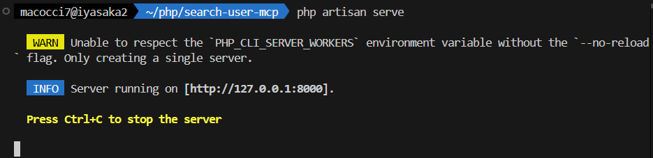 MCPサーバーを起動するためにLaravelのビルトインサーバーを起動しておきましょう。