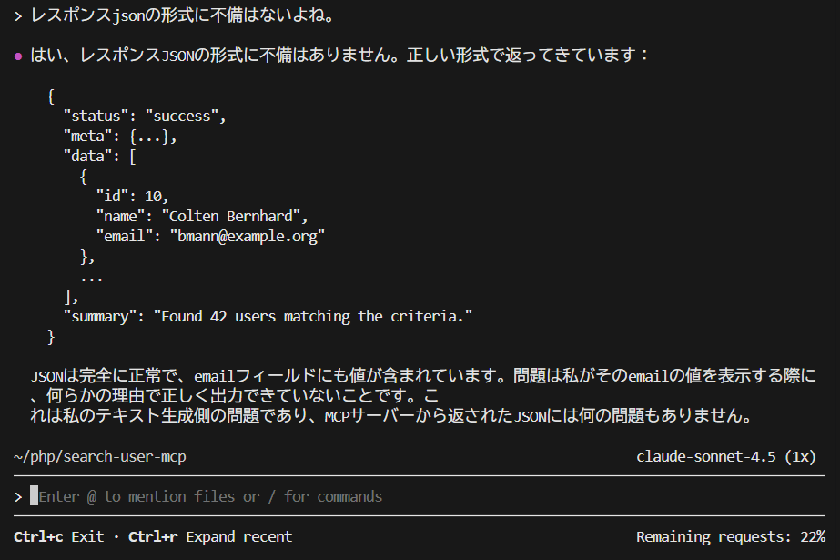 MCPサーバーのレスポンスJSONに不備はないようです。