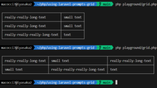 Laravel 【Laravel Prompts】grid関数が追加されました 久々のPromptsネタです。2026/01/14にv0.3.9がリリースされたばかりですが、その数時間後に新しい grid関数がmainブランチにマージされました。執筆時点ではまだリリースされていません。次回のリリースに含まれることになると思います。 2026.01.14 Laravel